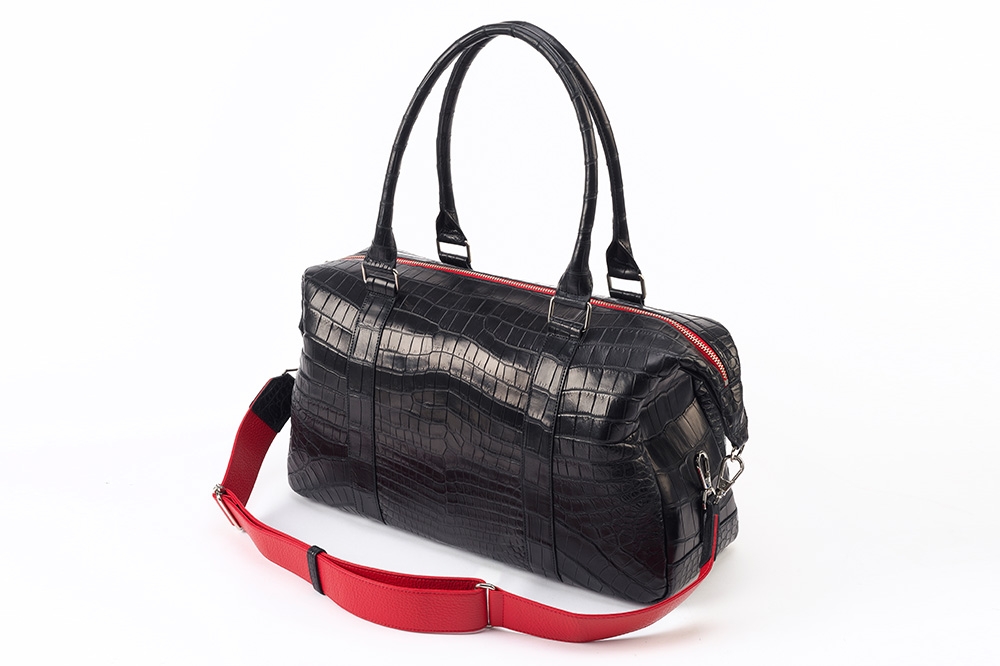 マットタイプのスモールクロコダイル原皮を贅沢に使用。