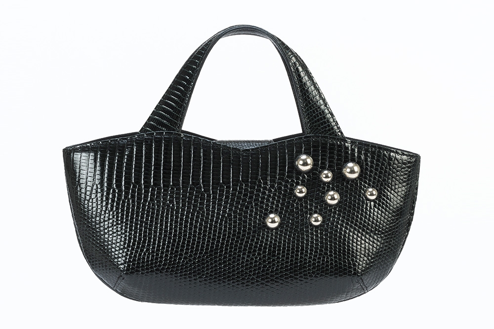 牛革/パイソン一本手捻り金具付ハンドバッグ